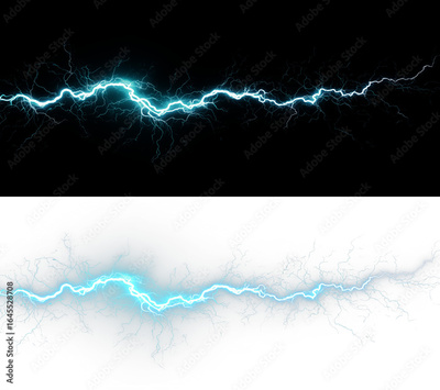 Bright blue lightning bolt with electric sparks and glowing energy PNG effect on a transparent background. Perfect for use in digital art, graphic design, animations, games