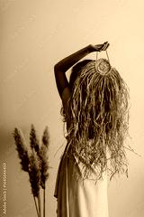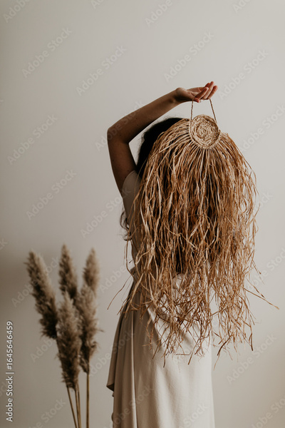 Woman Holding Raffia Wall Hanging, Boho Home Décor