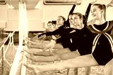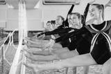Lovely little girls gymnasts warm up before the competition