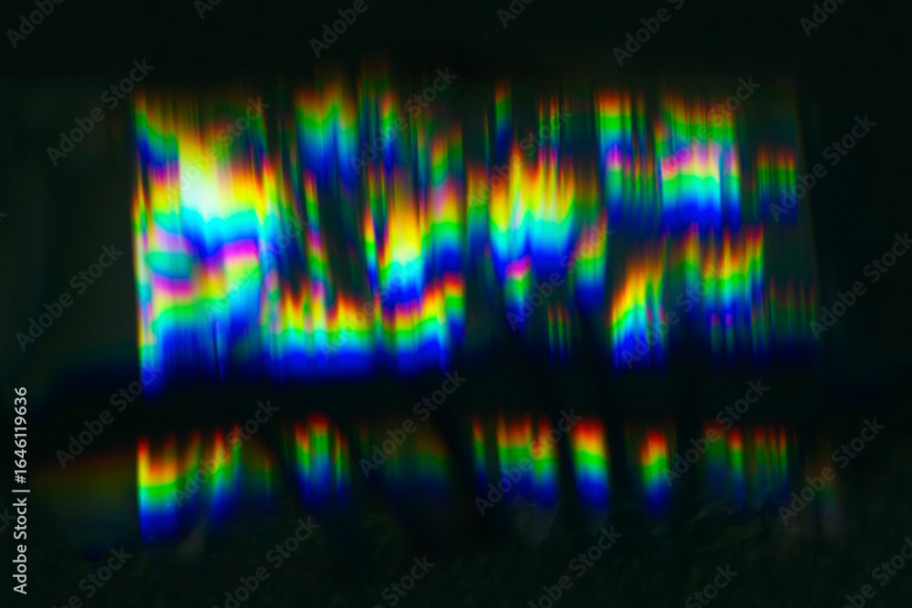 Colorful spectral patterns created by refraction of light through a prism, vibrating patterns.
