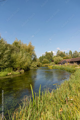 Tufton Hampshire England UK. 09.08.2025. The River Test famous chalk stream known for trout fishing flowing through Tufton south of Whitchurch Hampshire England UK.