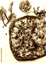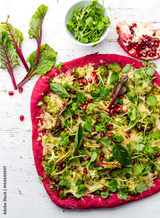 Purple beetroot dough, vegetables and sprouis pizza, Healthy fast food