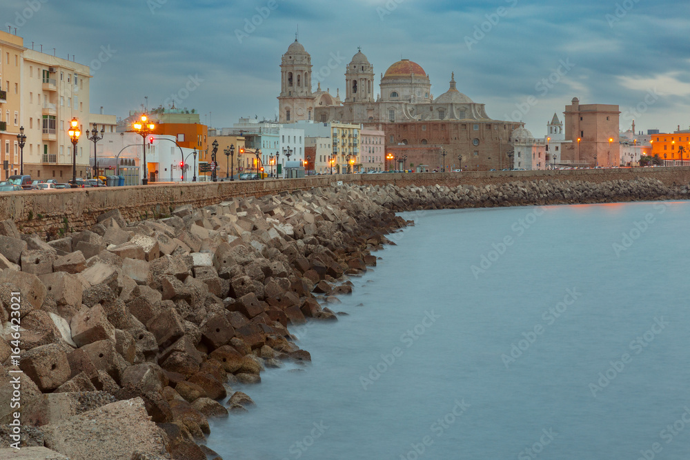 Cadiz Cathedral at dawn, Cadiz, Spain