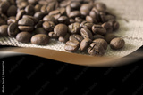 Coffee beans background for.Space for text on black background.Brochure flyer design template. .Food menu design
