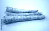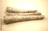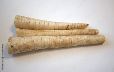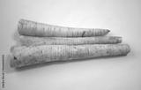A bunch of fresh white carrots arranged on a clean white background, photographed in close-up with copy space for design or recipe use.