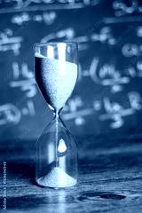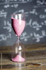 Hourglass on wood with a blackboard background