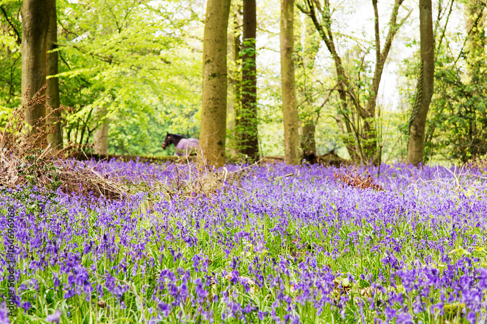 Bluebells growing on an english woodland floor