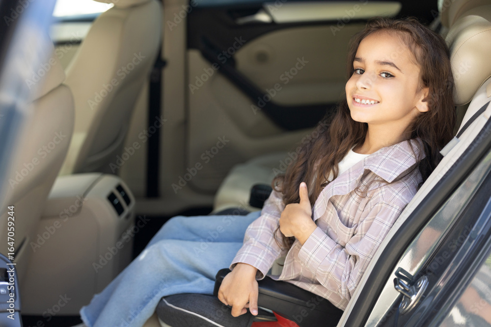Sweet girl of school age in the car drawing and looking peaceful