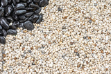 Close up black stones and white gravel texture background for wallpaper.