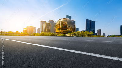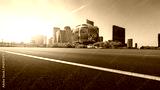 Modern Urban Road with Skyscrapers and Sunlit Architecture