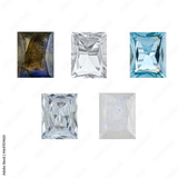Different color rectangular shaped gemstones for designers and mockup isolated on white background