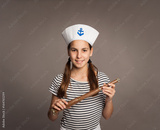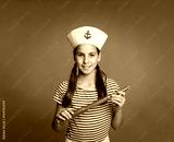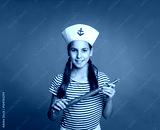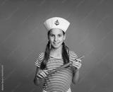 little marine holding a spyglass on a gray background