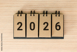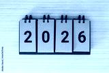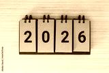 New Year 2026 is coming concept. The word 2026 on wooden background. Flat lay.