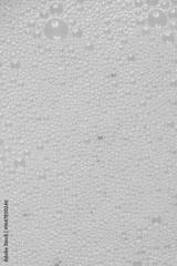 A detailed close-up of the surface of a creamy beverage, showing a dense, frothy texture of countless small bubbles