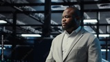 Admin working in high tech server hub capable of processing and storing vast amounts of data. African american IT specialist troubleshooting server rows controlling network resources, camera B