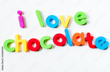 Fridge magnets magnetic letters spelling out "I love chocolate"