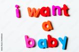Fridge magnets magnetic letters spelling out "I want a baby"
