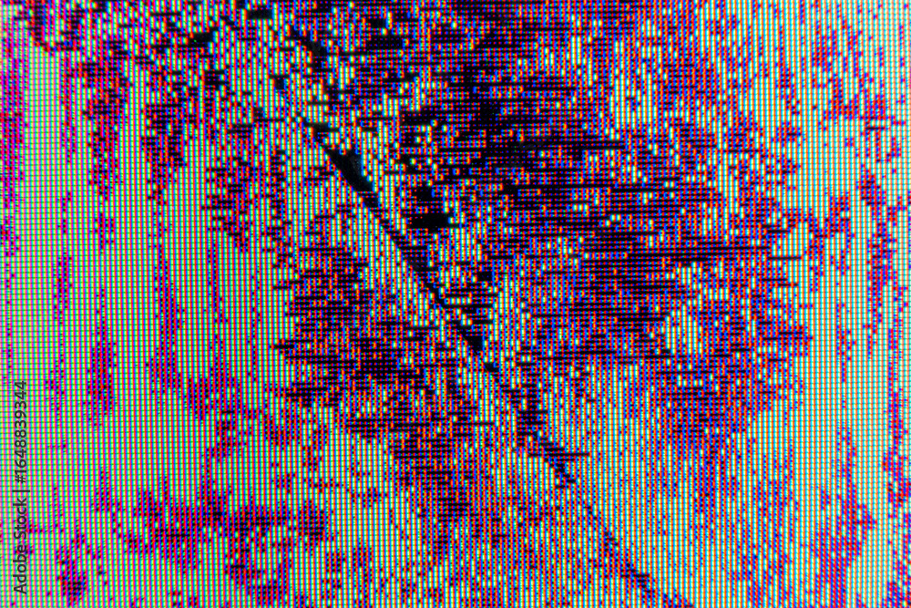 LCD Screen broken, Glitch Error or Colorful digital pixel noise, The colorful design showcases vibrant static patterns and textures, evoking an error-filled monitor screen with a high-tech aesthetic