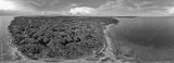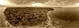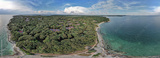 Aerial drone panorama view of Istrian peninsula Lanterna coastline, Croatia.