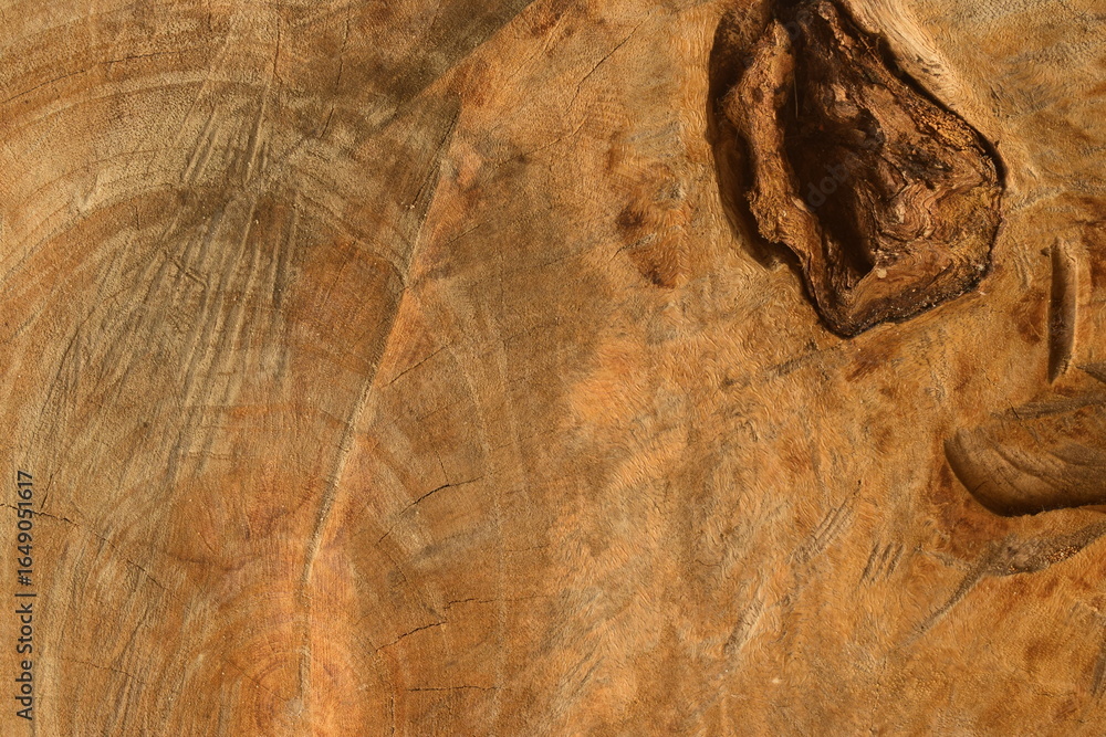 Tronco de cajueiro, textura do topo de cepo da árvore de cajueiro, madeira desbastada de cajueiro velho antigo, fundo amadeirado
