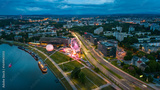aerial view of krakow center and wawel royal castle at sunset in summer in poland