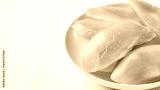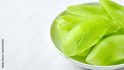 closeup green slice cut wosun or celtuce stem lettuce food white background with copy space