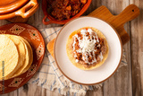 Ground beef tinga, a traditional Mexican home-cooked dish consisting primarily of beef cooked with chipotle chili and lots of onion, is traditionally eaten on "Tostadas" (fried corn tortillas).