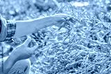Hands showing green radish seed pods in vegetable garden