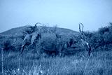 Elephants graze peacefully on a sunny, hot day in Pilanesberg National Park, South Africa.