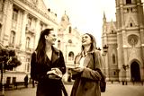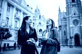 Two Female Students with Books on College Campus