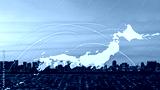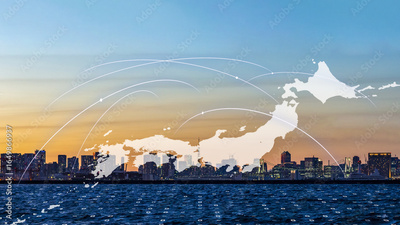 Global business hub skyline with data visualization