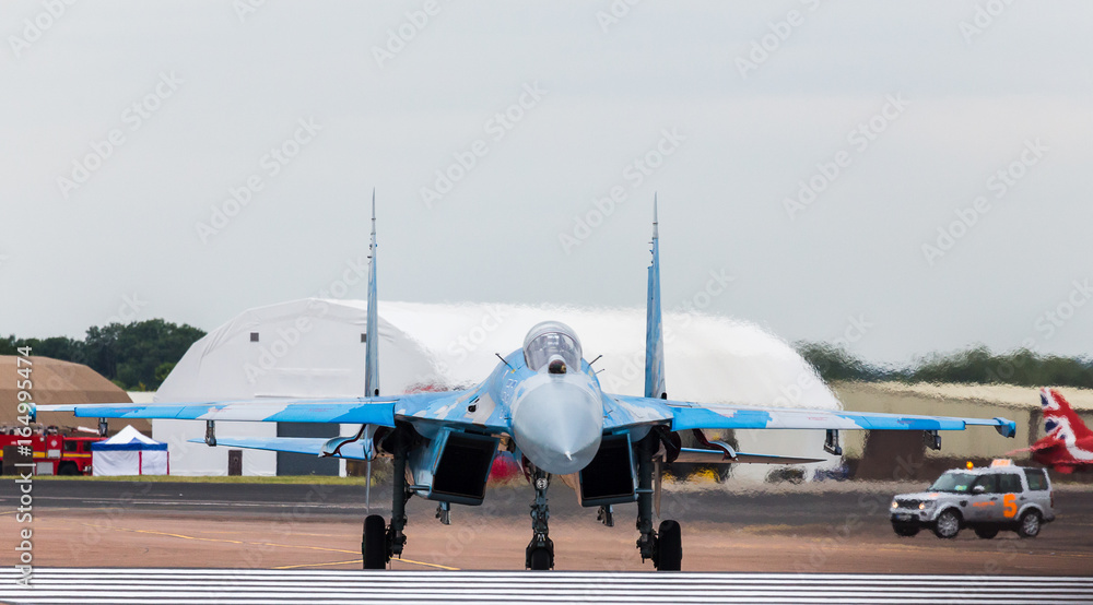 Ukrainian Air Force Su-27 Flanker moves onto the runway for takeoff