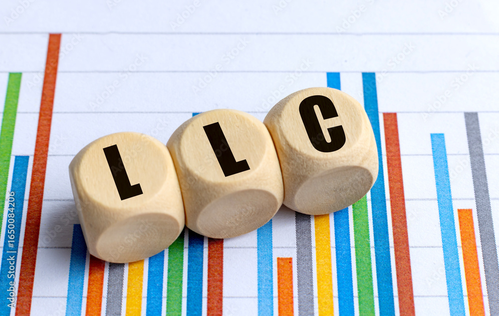 LLC acronym on wooden blocks with colorful bar chart in the background