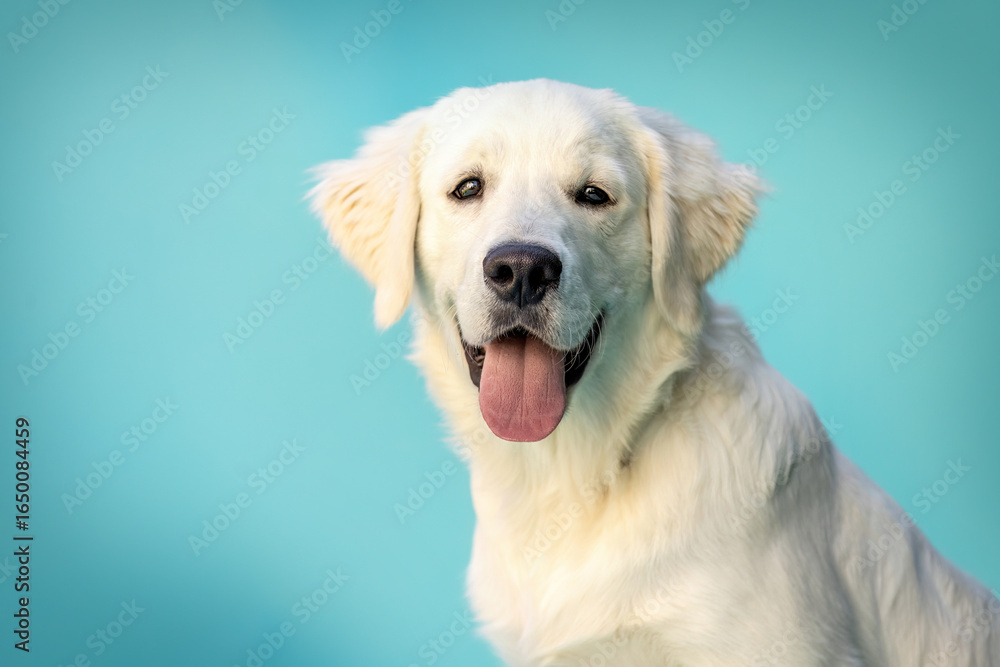 A Golden Retriever puppy posing in studio with playful expressions