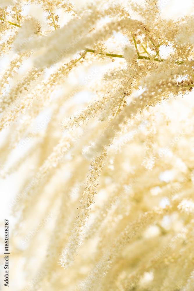 Close up of delicate beige amaranth flower bathed in summer sun rays