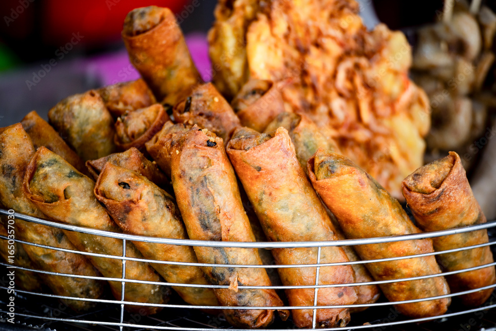 a classic fried spring roll from a Taiwanese night market or food stall