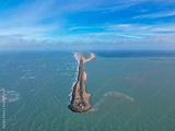 Aerial drone view of Danushkodi in Rameswaram, Tamil Nadu, India.
