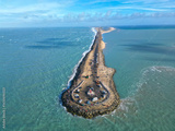 Aerial drone view of Danushkodi in Rameswaram, Tamil Nadu, India.