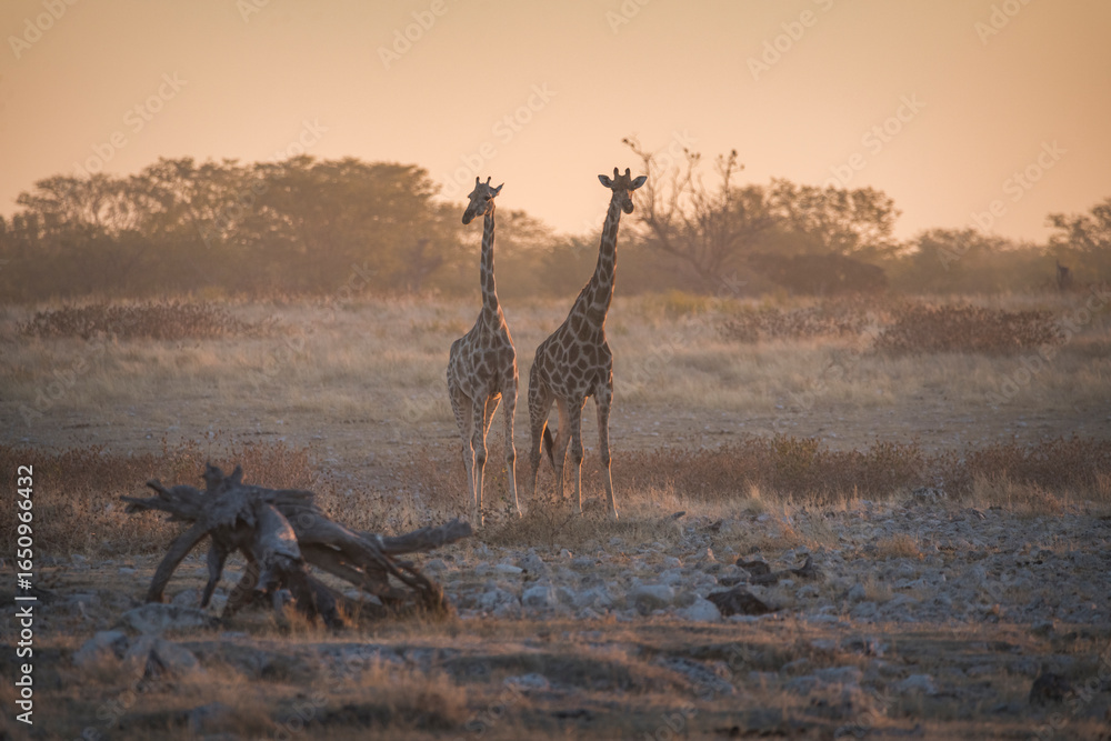 Two giraffes in sunset light in Etosha