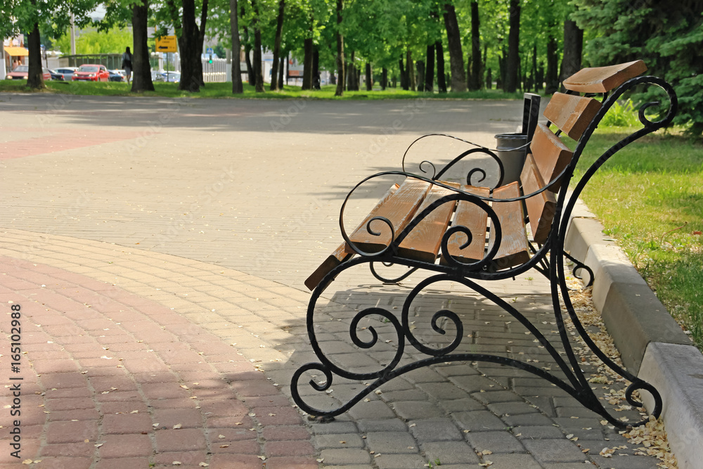 Wooden bench with forged fragments