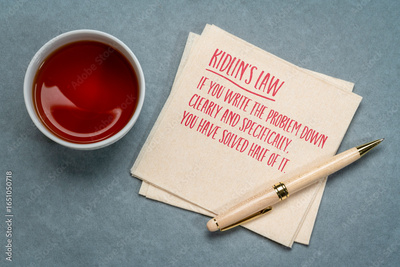 Kidlin’s Law - If you write the problem down clearly and specifically, you have solved half of it. Note on napkin, reminder that clarity is a form of progress.
