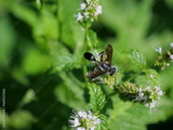A steel blue cricket hunter (Isodontia mexicana) is a digger wasp. Photographed in Tremosine.