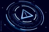 Cybersecurity warning icon glowing in red with digital futuristic interface on dark background indicating system alert or potential hacking risk. 3D Rendering