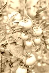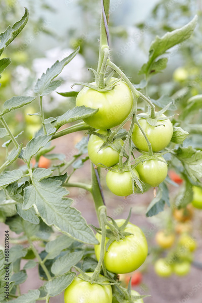 Organic tomatoes grown in a greenhouse, selective focus.