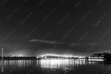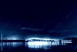 cars in motion on a lighted bridge over the sea with a starry sky, boats in Auckland, New Zealand