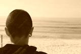 Girl of swords with pierced ear and sea in the background