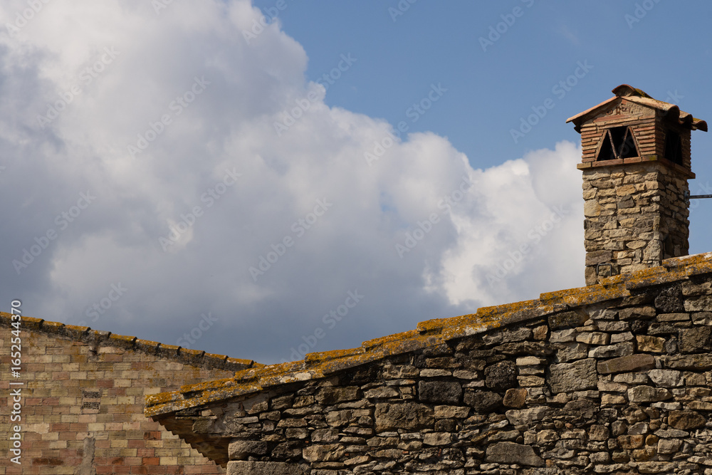 old stone house chimney and roof