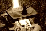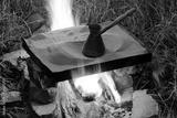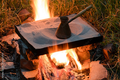 Preparation of coffee in a turk on sand on a fire in the open air