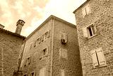 Historic stone walls and shuttered windows in Budva’s old town charm