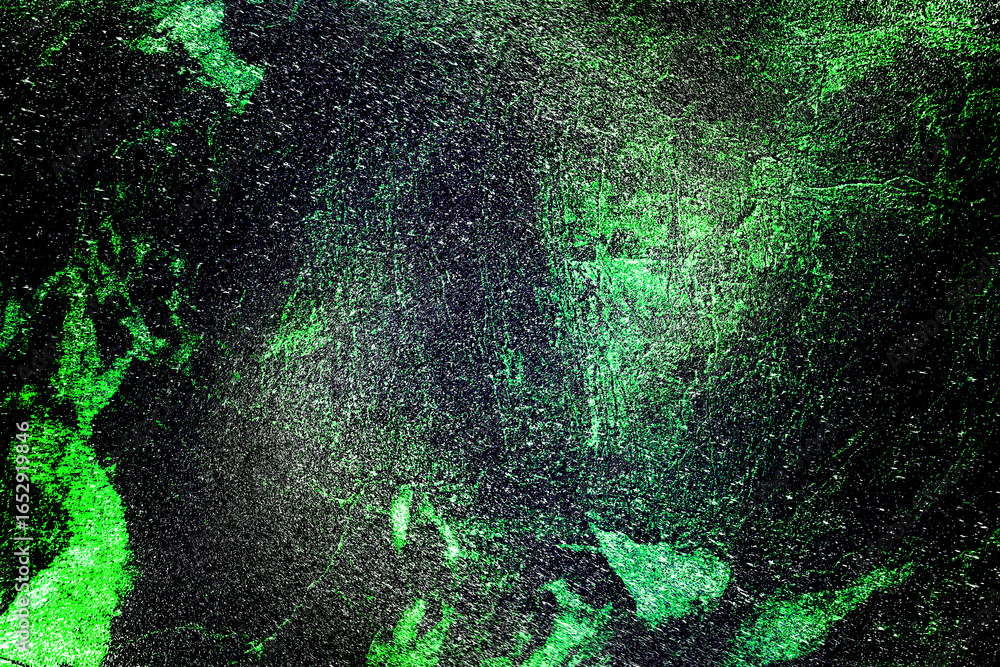 Black dark green golden red brown shiny glitter abstract background with space. Twinkling glow stars effect. Like outer space, night sky, universe. Rusty, rough surface, grain.